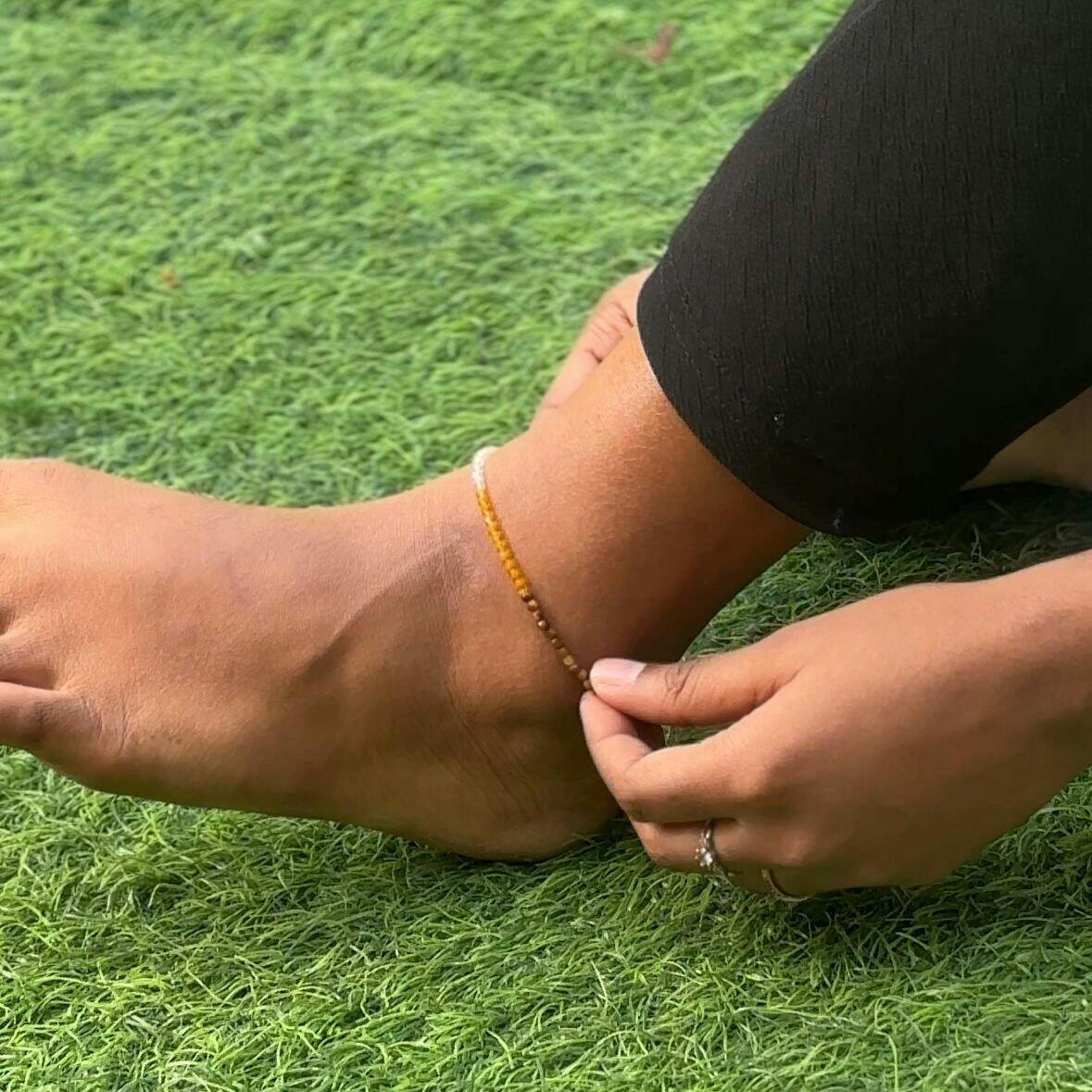 The Dhan Yog Pyrite Anklet is a powerful spiritual accessory designed to attract wealth, prosperity, and abundance into your life. Pyrite, known as "Fool's Gold," has been revered for centuries for its ability to manifest financial success and positive energy.